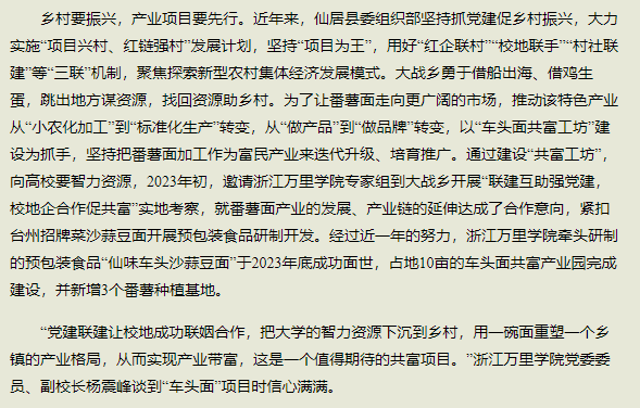 《浙江日报》仙居:借船出海、借鸡生蛋,打造沙蒜豆面致富产业链