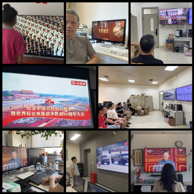 文献与信息中心党总支的党员同志们通过手机、电脑、电视等多种形式观看了纪念大会直播活动。同志们目不转睛地注视着整齐划一的方阵,看着听着那铿锵有力的步伐声,脸上洋溢着喜悦的笑容,心中充满激动与自豪,更加坚定了自己的教育责任,把爱国和拼搏精神融入到日常工作中。这次阅兵仪式是一场庄严肃穆的盛典,更是一次精神的洗礼。我们必将铭记先辈们的牺牲和今天和平生活的来之不易,坚定为实现中华民族伟大复兴而努力奋斗的决心,自强不息、奋发有为。