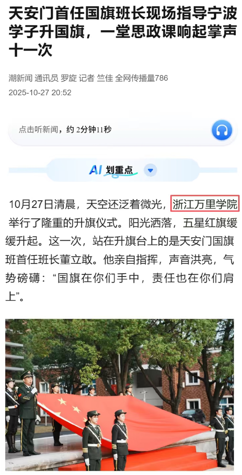 《潮新闻》天安门首任国旗班长现场指导宁波学子升国旗,一堂思政课响起掌声十一次
