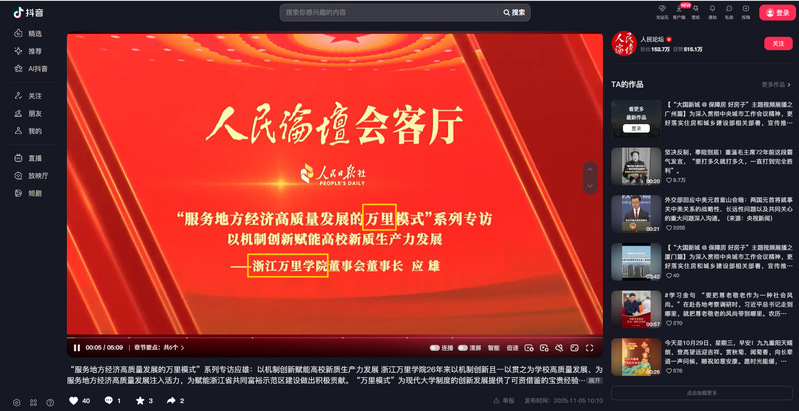 《人民论坛•抖音号》“服务地方经济高质量发展的万里模式”系列专访 以机制创新赋能高校新质生产力发展