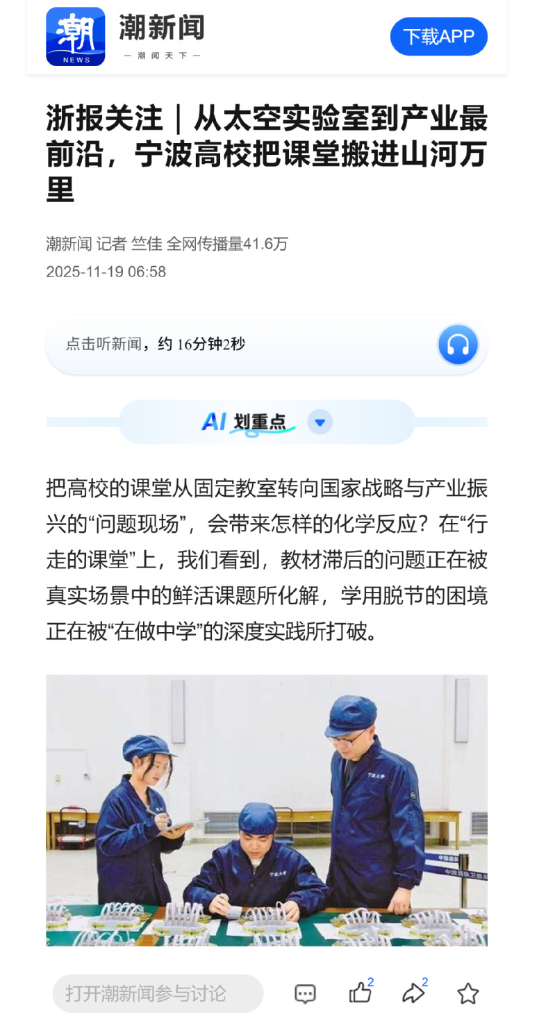 《潮新闻》从太空实验室到产业最前沿,宁波高校把课堂搬进山河万里