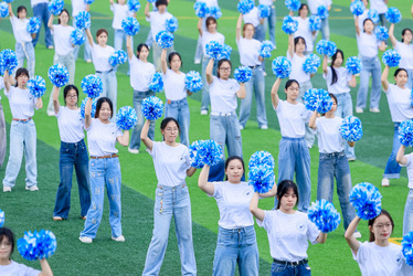 迎着晨曦,国旗护卫队迈着矫健的步伐,气势昂扬地走来。健身操舞俱乐部活力四射的开场表演瞬间点燃了全场的运动热忱。团体操《奇妙的惊喜》带来惊艳表演,《金蛇狂舞》的旋律响彻云霄,《追寻》的歌声沁入人心。各二级学院方阵、教职工代表方阵、裁判员方阵与志愿者方阵依次登场,洋溢着蓬勃朝气,绽放着激情力量。