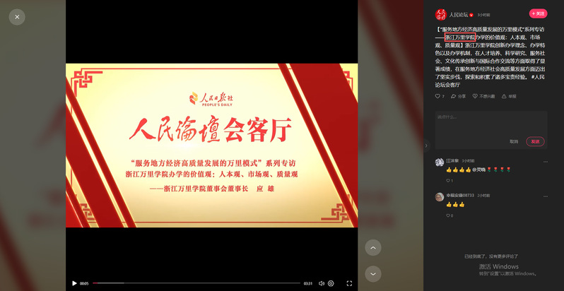 《人民论坛•快手号》“服务地方经济高质量发展的万里模式”系列专访——浙江万里学院办学的价值观:人本观、市场观、质量观