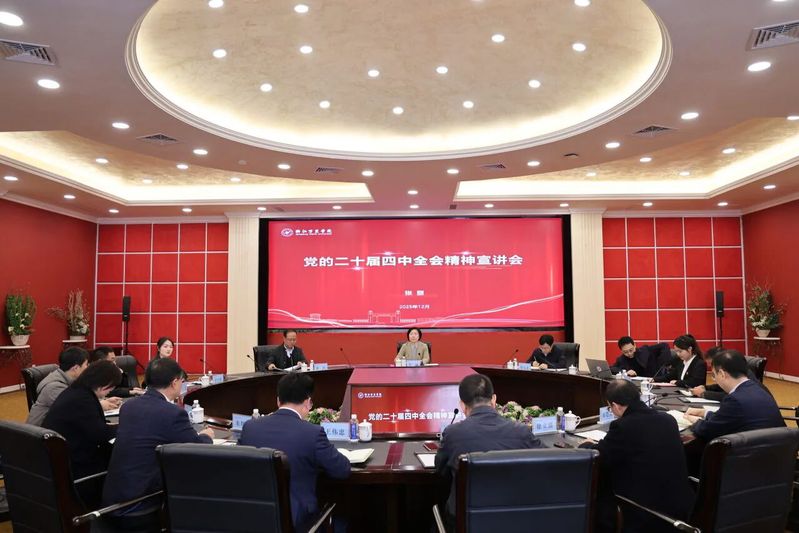 党的二十届四中全会,是在我国即将胜利完成“十四五”主要目标任务,进入基本实现社会主义现代化夯实基础、全面发力的关键时期召开的一次重要会议。张丽紧紧围绕学习贯彻党的二十届四中全会精神,从深刻领会全会的重大意义、全面理解“十五五”时期经济社会发展的战略任务和重大举措,宁波如何在“十五五”时期勇立潮头、接续奋斗三个维度展开宣讲,并针对高校贯彻落实全会精神、扛起使命担当、作出更大贡献提出明确要求。