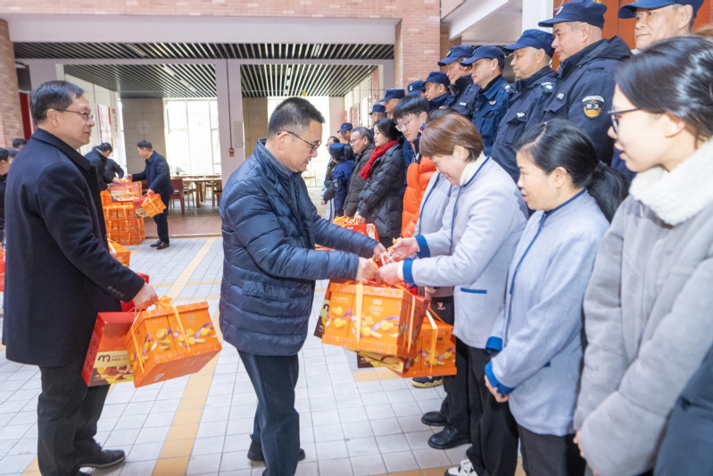 2月9日、2月10日,校长林志华、副校长陈建革、党委副书记朱邦相深入校园一线,看望慰问寒假期间坚守在安全保卫、后勤服务、宿舍管理等岗位的一线工作人员。林志华指出,过去一年,学校各项事业实现稳步发展、取得长足进步,离不开每一位工作人员日复一日的辛勤付出。寒假期间,要时刻绷紧安全这根弦,从严从实抓好校园安全稳定各项工作,扎实做好留校师生服务保障。