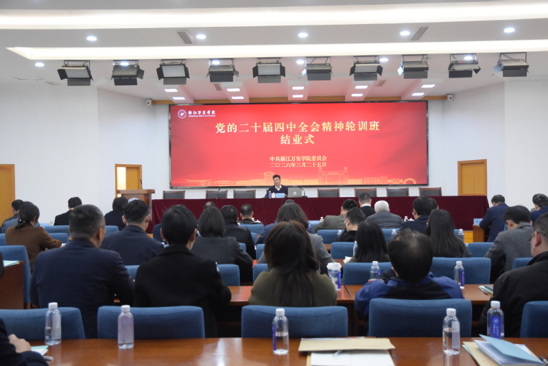 3月25日,学校中层以上干部学习贯彻党的二十届四中全会精神集中轮训班结业式在行政楼212会议室举行。学校领导班子成员、全体中层干部出席会议,党委书记王伟忠主持会议并讲话。