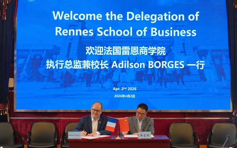 会谈结束后,林志华与Adilson BORGES代表双方高校签署了相关合作协议。此次签约不仅标志着我校与法国雷恩商学院的战略合作伙伴关系迈上新台阶,更为两校在产教融合、创新创业及国际高层次复合型人才培养等领域的长效合作绘就了务实合作的蓝图。