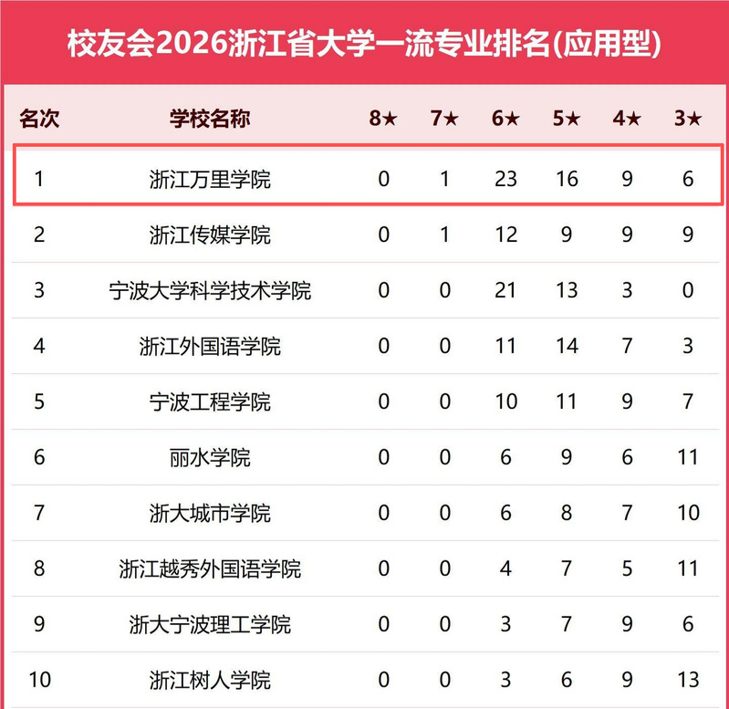近日,艾瑞深校友会网正式发布校友会2026中国大学排名,我校表现卓越,稳居浙江省应用型高校榜首,全国排名第4位,较去年提升3个位次,位列浙江省大学一流专业排名(应用型)榜首,实现自该榜单分类评价以来的“六连冠”。