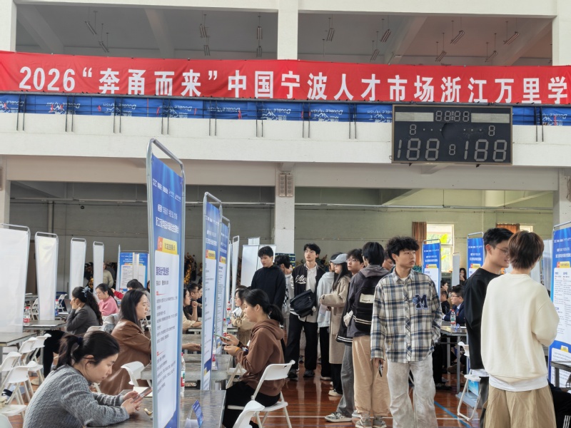 当天,学校还在钱湖校区体艺馆举办了2026年春季第三场综合性招聘会,并设置设计艺术与建筑学院、大数据与软件工程学院专场。共有83家用人单位参会,涵盖金融、物流、教育、商贸、智能制造等多个领域,提供岗位2430余个,吸引1100余名学生到场求职。朱邦相走进招聘现场,与参会学生及用人单位代表亲切交流,详细了解企业招聘需求和毕业生求职情况,鼓励毕业生把握机遇、积极就业。