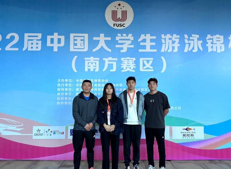 近日,第22届中国大学生游泳锦标赛(南方赛区)在遵义市奥体中心游泳馆拉开序幕。我校建筑191班杨皓越、法学22A4班黄琢芯两名同学首次参与该项比赛,奋勇拼搏,取得2银1铜的佳绩。