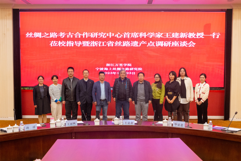 11月23日下午,西北大学教授、丝绸之路考古合作研究中心首席科学家王建新一行莅临我校,就浙江省丝路遗产点开展调研交流。宁波中国港口博物馆副馆长毕显忠,我校党委副书记、副校长王伟忠,校科研处、宁波海上丝绸之路研究院、文化与传播学院等部门负责人参加座谈会。